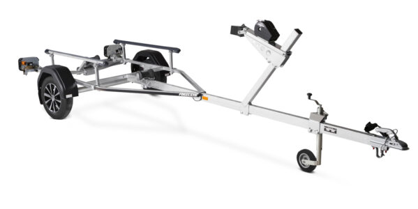 Obromsad trailer med skenor för mindre båtar upp till 15 fot. Tippbar bakre vagga och justerbara skenor för enkel anpassning till din båt. Varmgalvaniserat chassi för lång hållbarhet. Elen är helt skyddad i båttrailerns chassi. Vattentäta hjullager förlänger livstiden. Helskyddad vinsch och vinschtorn som är enkelt att anpassa, vinschtornet är även utrustat med en extra säkerhetsvajer för användning vid transport. Smidig, vikbar och vattentät LED-belysning vilket gör både av- och pålastning väldigt enkel. Båttrailern på bilden kan vara extrautrustad