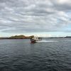 så startas båten upp i sjön för en sista kontroll inför säsongen!